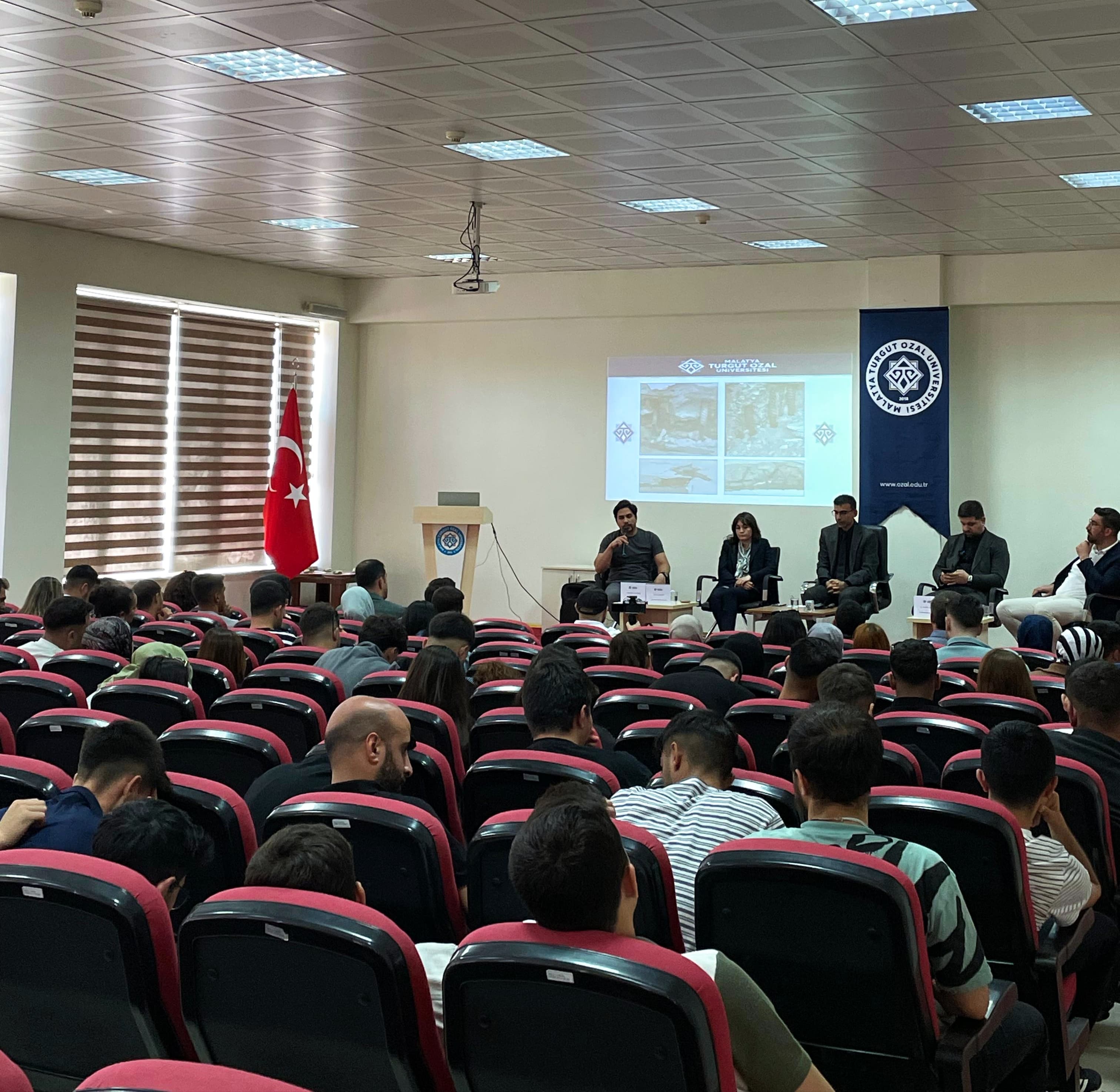 Held on May 14, 2025, in the Vocational School Conference Hall, the event addressed topics such as career development, internships, structural safety, inspection processes, construction site practices, and professional responsibilities. The event was attended by Vocational School Director Dr. Kadir DOĞANŞAHİN and academic staff. Moderated by Vocational School Deputy Director Dr. Mahmut BAŞSÜRÜCÜ, the guest speakers included Kadircan ESEN, President of DAİMFED Malatya Branch; Assoc. Prof. Dr. Ceren KINA, Faculty Member of the Civil Engineering Department at Malatya Turgut Özal University Faculty of Engineering and Natural Sciences; Civil Engineer Hüseyin BENLİ from Malatya Building Inspection Company; and Survey Engineer Habip TOPBAŞ from Darende Municipality.